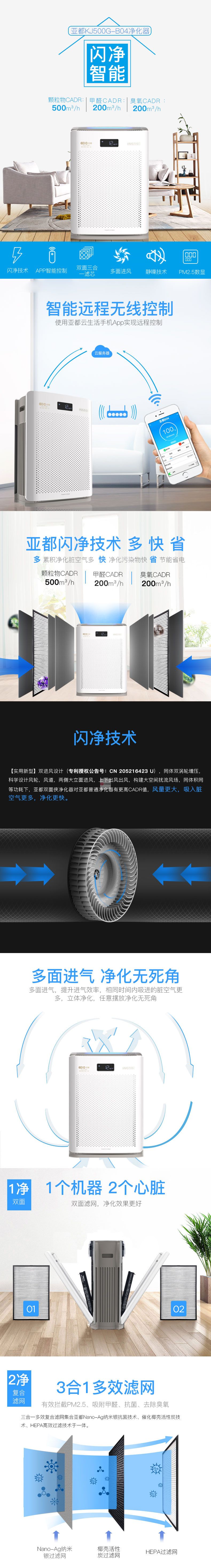自營亞都(YADU)KJ500G-B04 空氣凈化器 610*440*260(mm)