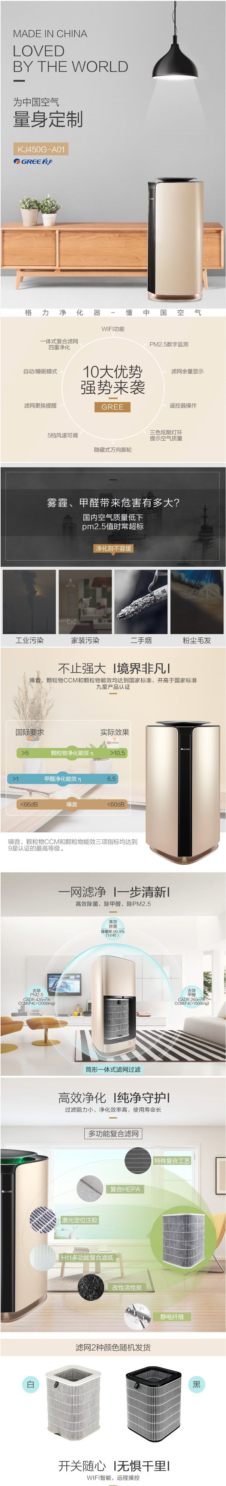 商品名稱:格力(GREE)KJ450G-A01 空氣凈化器 家用除霧霾PM2.5除甲醛除細菌智能wifi 遙控雙控制