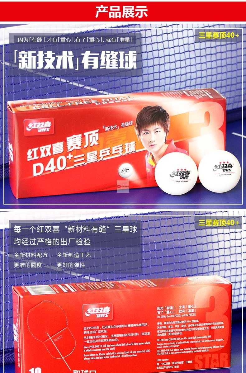 商品名稱:紅雙喜乒乓球三星級(jí)一星二星比賽訓(xùn)練用球40+白黃色 ppq正品40mm 一星40+賽頂10只盒裝(白色)