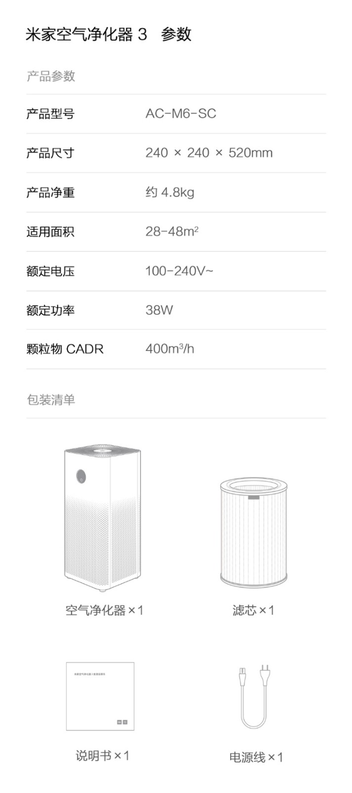 商品名稱:小米(MI)米家空氣凈化器3代(AC-M6-SC) 家用智能除甲醛霾PM2.5監(jiān)測室內(nèi)凈化顆粒物凈化器 米家空氣凈化器3
