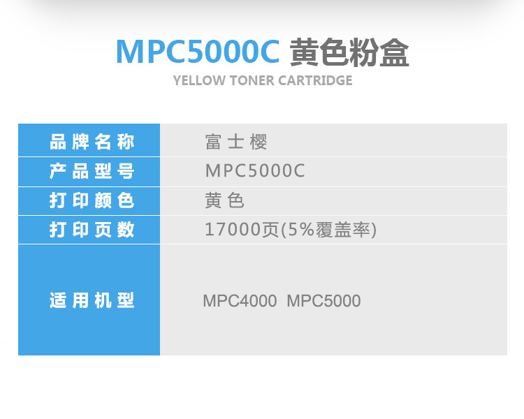 商品名稱:富士櫻(FUSICA)MPC5000C黃色粉盒 適用理光Ricoh Aficio MP C4000/C5000(SPF)