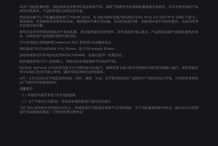 商品名稱:?聯(lián)想(Lenovo)拯救者刃7000K 2022游戲電腦主機(jī)(12代i7-12700F RTX3060Ti LHR顯卡 16G DDR5 512G SSD)