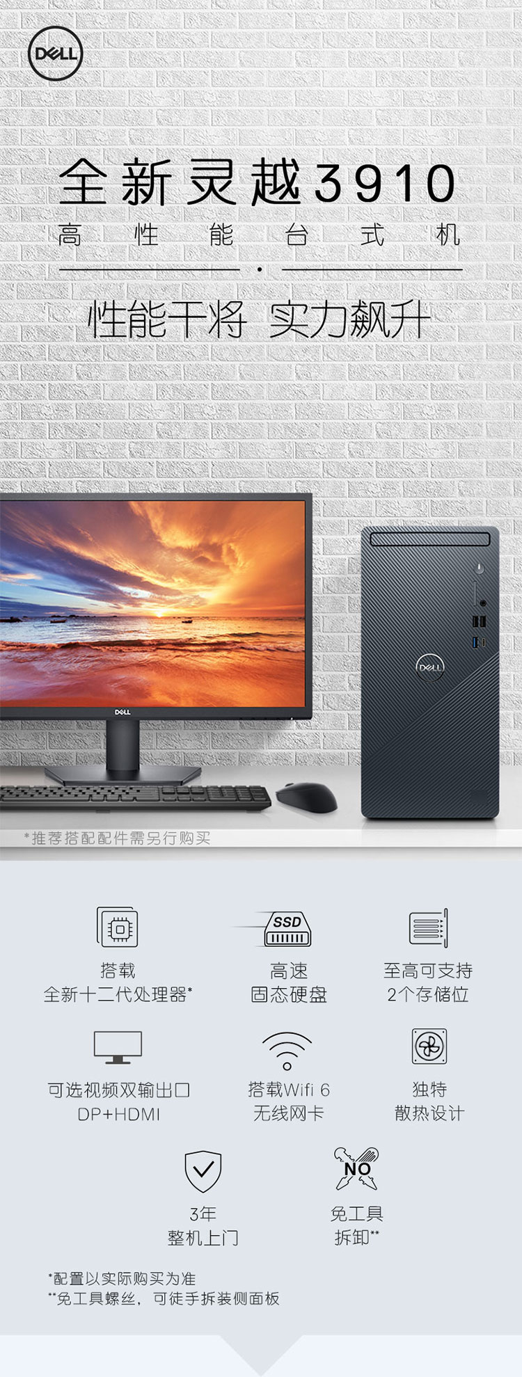 自營戴爾DELL靈越3910 家用辦公電腦 商務(wù)臺式機(jī)電腦主機(jī)(12代i5-12400F 16G 256G+1T 2G獨(dú)顯 )23.8英寸整機(jī)