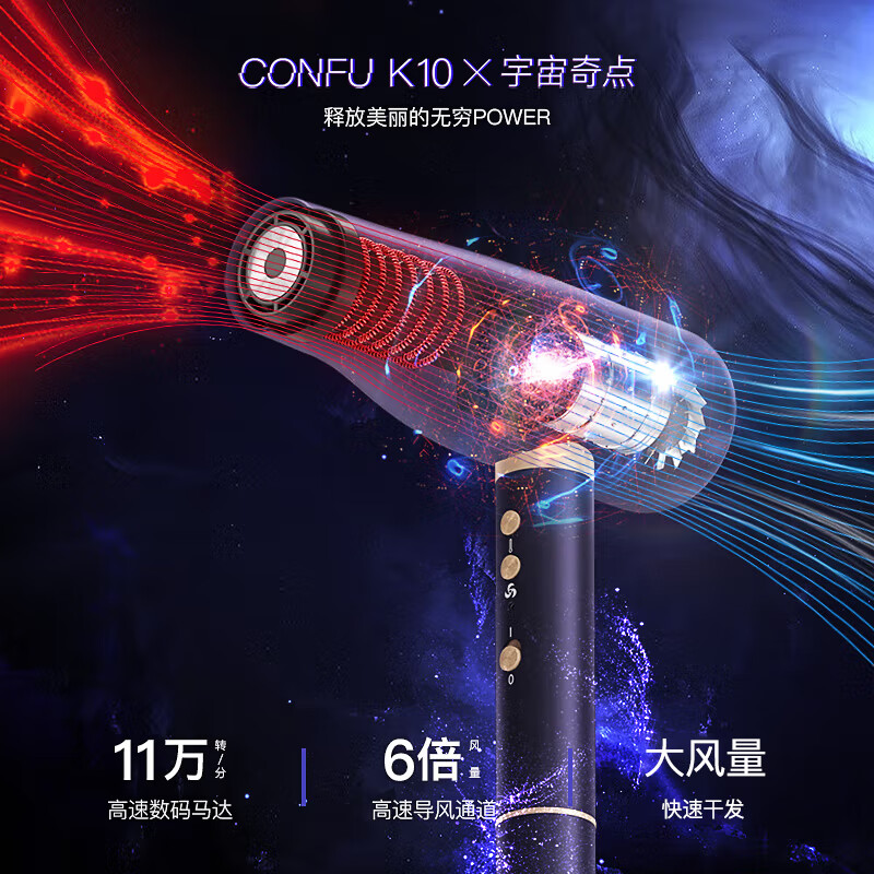商品名稱:康夫(CONFU) KF-K10 電吹風 高速家用大功率理發(fā)店專用低噪音大風力負離子速干 恒溫護發(fā)廊