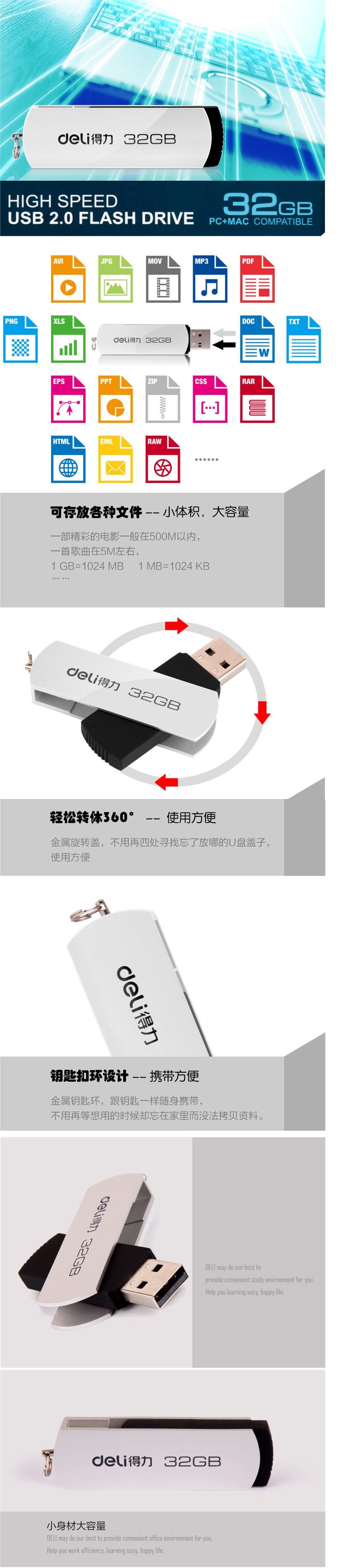 商品名稱:得力 3753 容量32G 高速U盤 接口USB2.0 金屬外殼 銀色