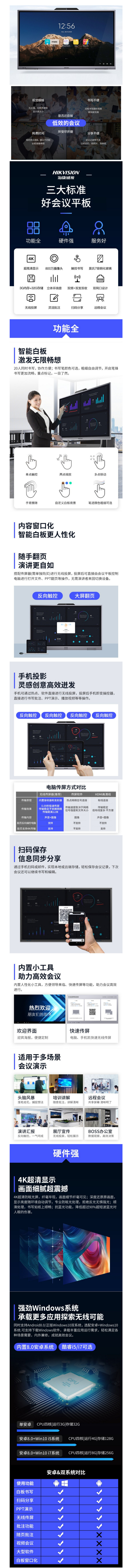 商品名稱:??低暎℉IKVISION)DS-D5B75RD/B 智能交互式電子白板會議平板一體機 75英寸 4K超清(內(nèi)置OPS:I5/8G/256G SSD/含原裝移動支架、傳屏器、智能筆)