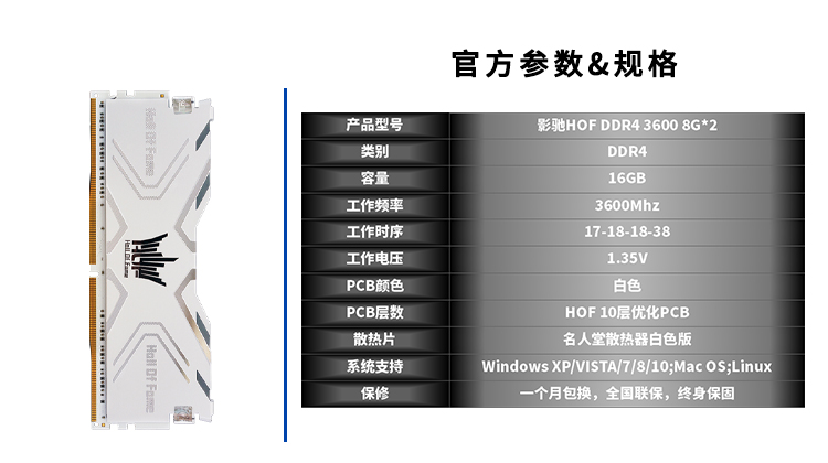 商品名稱:影馳 名人堂DDR4 3600 8G*2 16G 臺(tái)式機(jī)電腦內(nèi)存條 白色 DDR4 3600