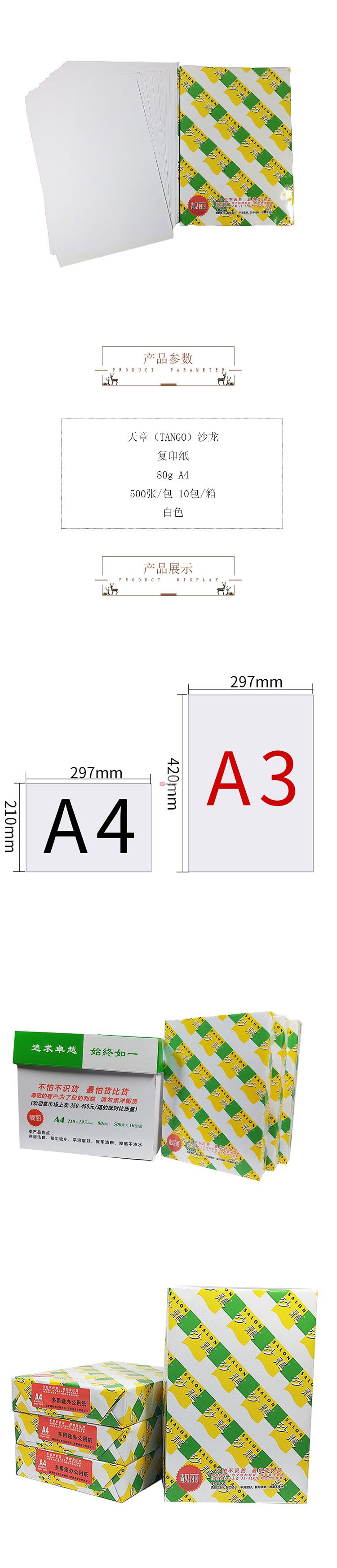商品名稱:天章(TANGO)沙龍復(fù)印紙 80g A4 500張/包 8包/箱 白色