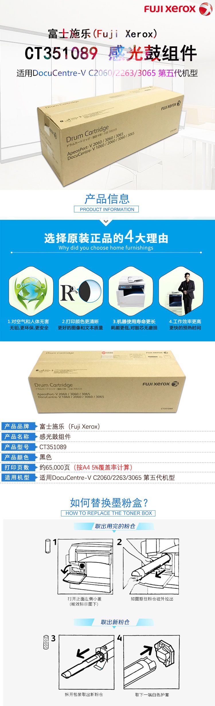 商品名稱:富士施樂(Fuji Xerox)CT351089 黑色 復印機硒鼓 適用于五代機器:2060/3060/3065