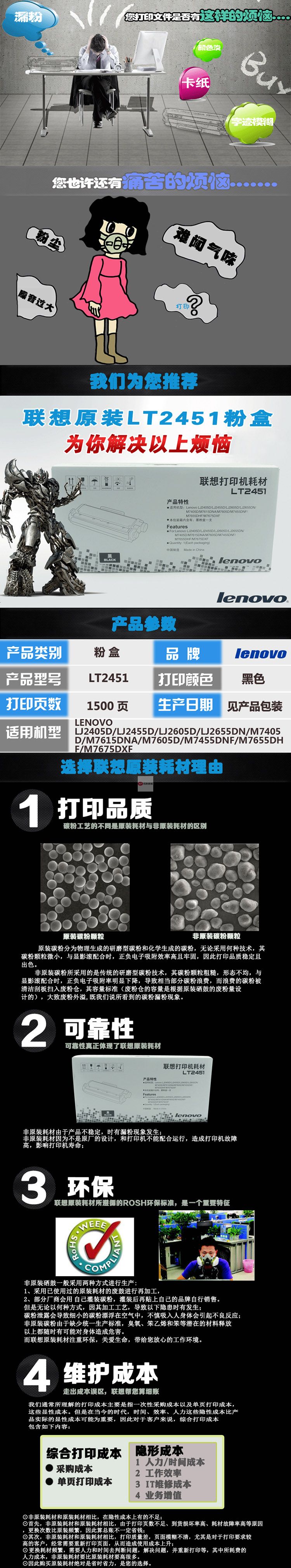自營聯(lián)想 LT2451粉盒,適用2405/2605/M7405/7615/7605/7655/7675/7655