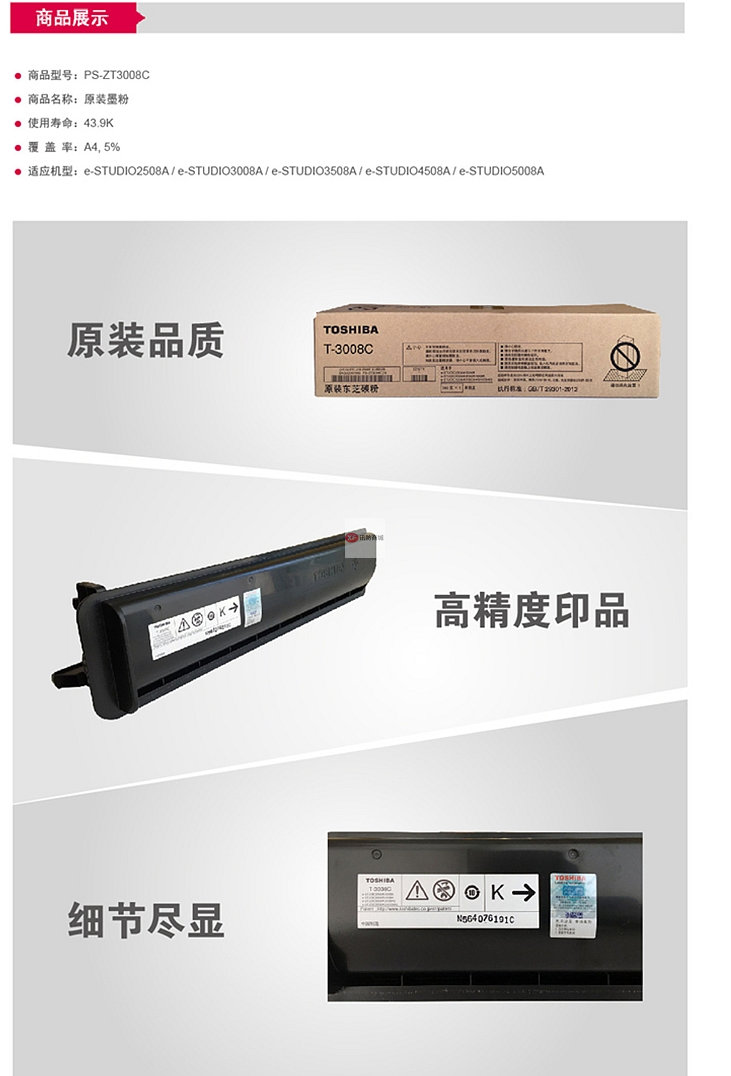 商品名稱:東芝原裝粉盒/PS-ZT3008C黑色粉盒適用2508/3008/3508/4508/5008A