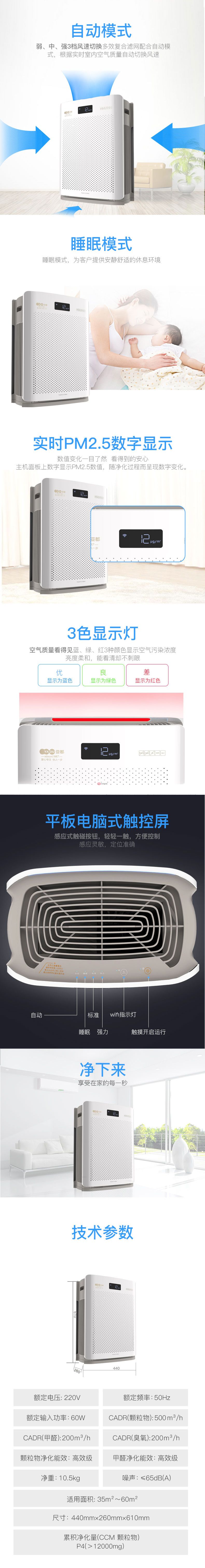 商品名稱:亞都(YADU)KJ500G-B04 空氣凈化器 610*440*260(mm)