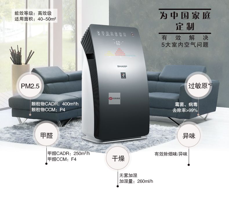 自營(yíng)夏普KC-CG60-M 空氣凈化器 除甲醛PM2.5霧霾異味花粉加濕智能互聯(lián)辦公室除煙塵