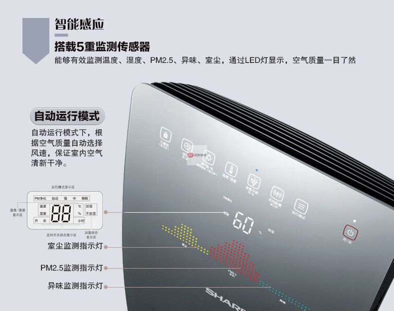 商品名稱(chēng):夏普KC-CG60-M 空氣凈化器 除甲醛PM2.5霧霾異味花粉加濕智能互聯(lián)辦公室除煙塵