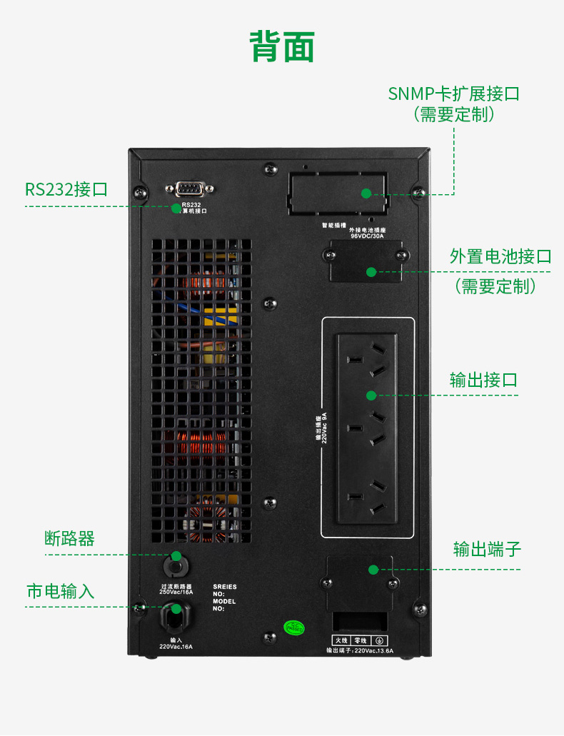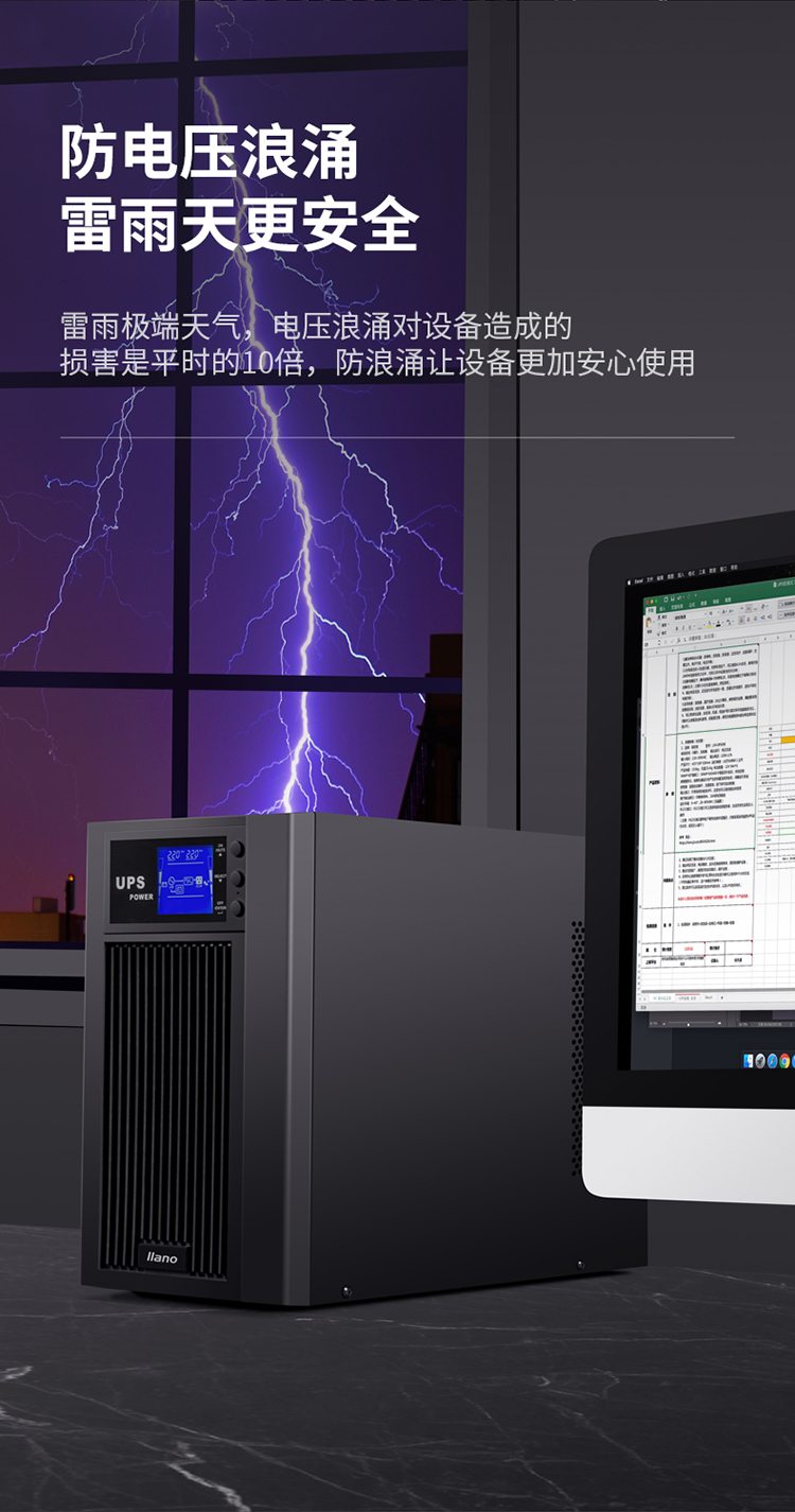 商品名稱:綠巨能(llano)UPS電源家用 不間斷電源 服務(wù)器辦公電腦后備電源 金屬外殼 在線式 3KVA/2400W 9AH電池*6
