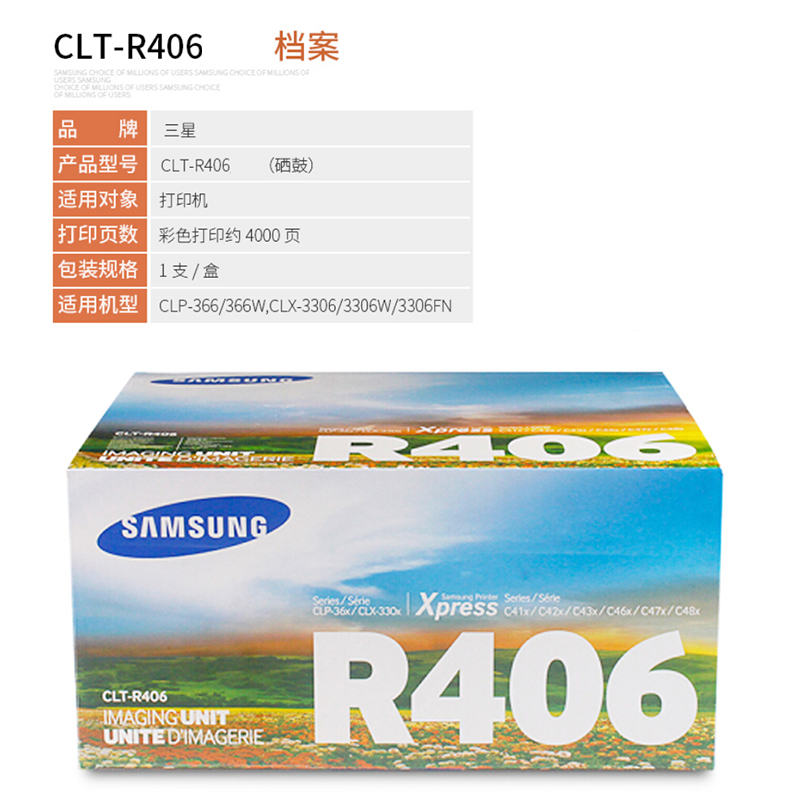 商品名稱:三星(SAMSUNG)硒鼓 CLT-R406 黃色 成像單元366W/C410W/460FW
