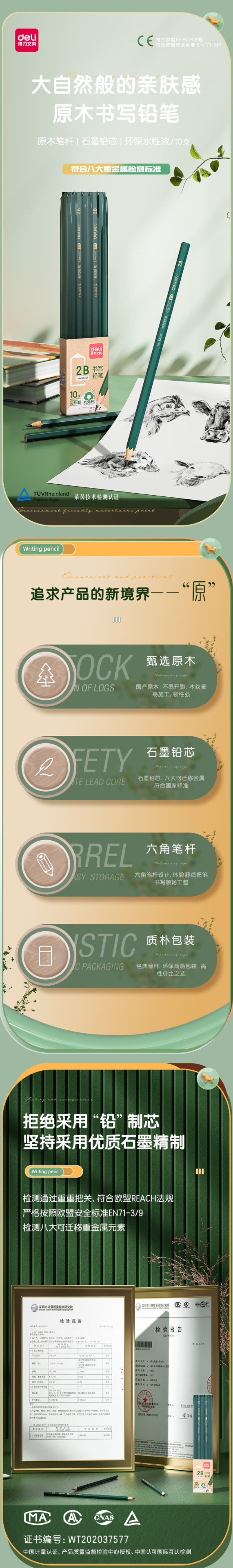商品名稱:得力(deli)經(jīng)典綠桿學(xué)生2B鉛筆六角筆桿考試素描繪圖鉛筆 開學(xué)禮物10支33312