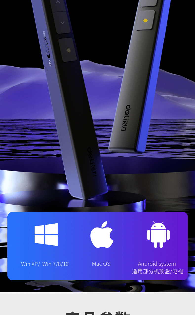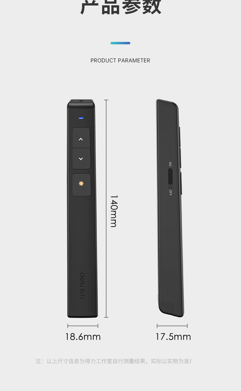 商品名稱(chēng):得力(deli)360度控制教師專(zhuān)用PPT投影筆激光翻頁(yè)筆教鞭電子筆演講筆 無(wú)線演示翻頁(yè)器課件筆 紅光 黑色2802