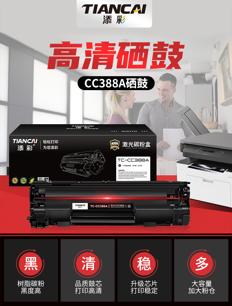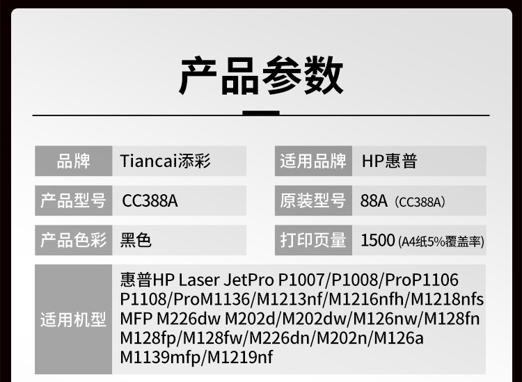 商品名稱:添彩商用裝企業(yè)版388A 88A硒鼓適用惠普HP LaserJet P1106 P1007 P1108 M126nw M202 M1136 M1213nf M1216nfh