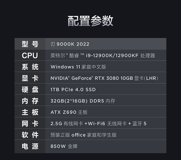 商品名稱:聯(lián)想(Lenovo)拯救者刃9000K 2022游戲電腦主機(12代酷睿i9-12900KF RTX3080 10G LHR顯卡32G DDR5 水冷側透 )