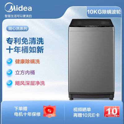自營(yíng)美的(Midea)波輪洗衣機(jī)全自動(dòng) 10公斤專利免清洗十年桶如新 立方內(nèi)桶 水電雙寬 MB100V13B 以舊換新