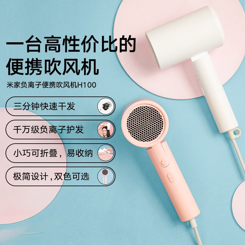 商品名稱:小米 H100 電吹風(fēng) 米家 負(fù)離子護(hù)發(fā)可折疊 白色/粉色