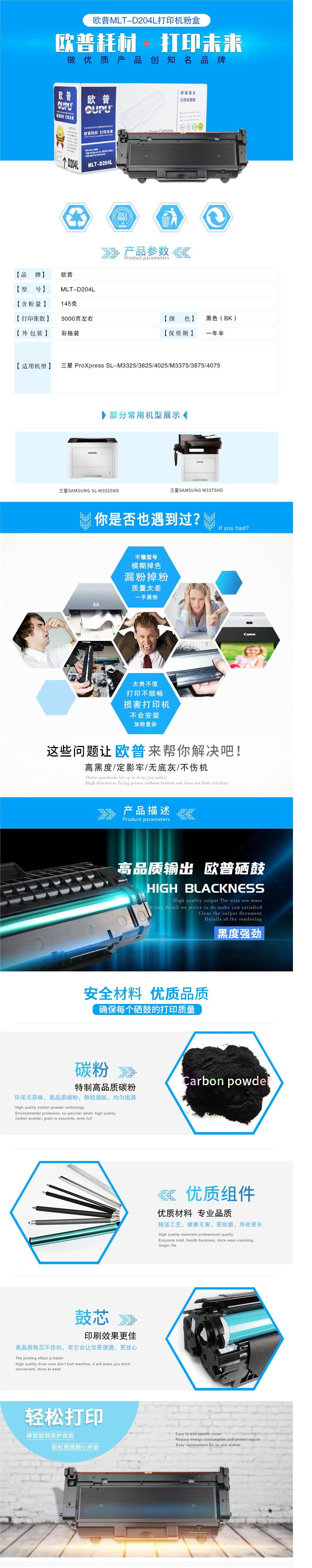 商品名稱:歐普(oupu)云系列打印機硒鼓MLT-D204L倉適用三星ProXpress SL-M3325等
