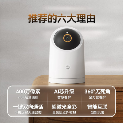 自營(yíng)華為智選海雀云臺(tái)2.5K 400萬像素家用攝像頭 微光全彩 哭聲人形 無線智能網(wǎng)絡(luò) 室內(nèi)監(jiān)控器攝像機(jī)