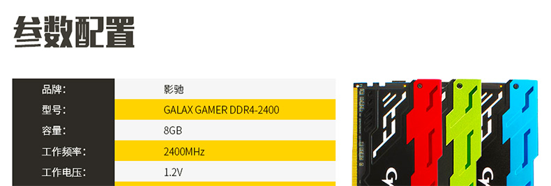 商品名稱:影馳 (Galaxy)GAMER DDR4 8GB 2400 頻率單條臺式機四代內(nèi)存條