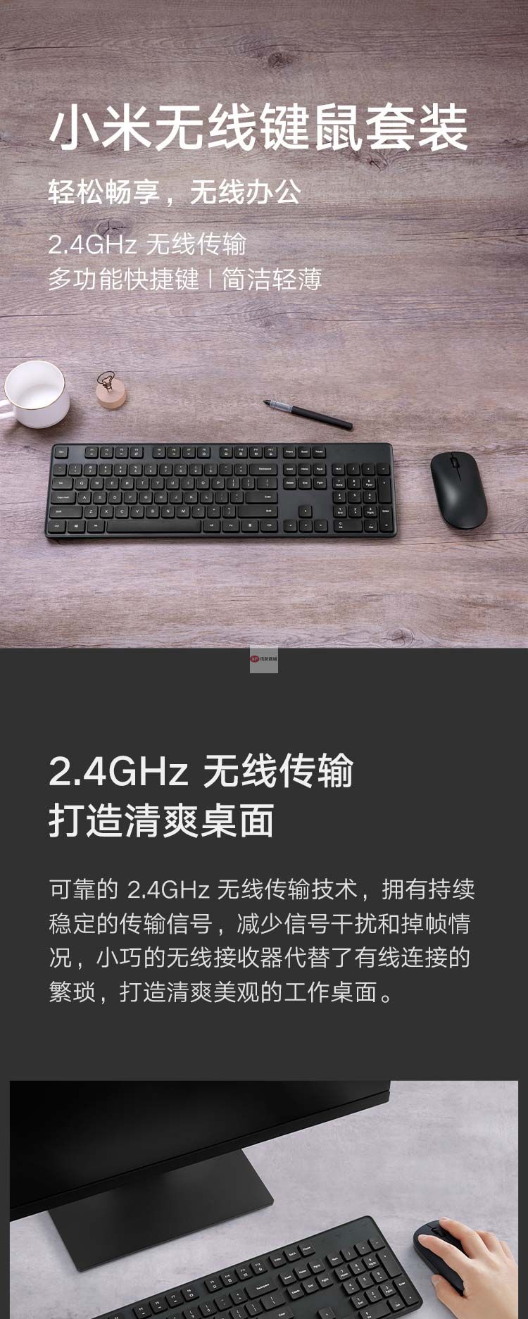 商品名稱:小米 無線鍵鼠套裝 簡潔輕薄 全尺寸104鍵鍵盤 舒適鼠標 2.4G無線傳輸 電腦辦公套裝